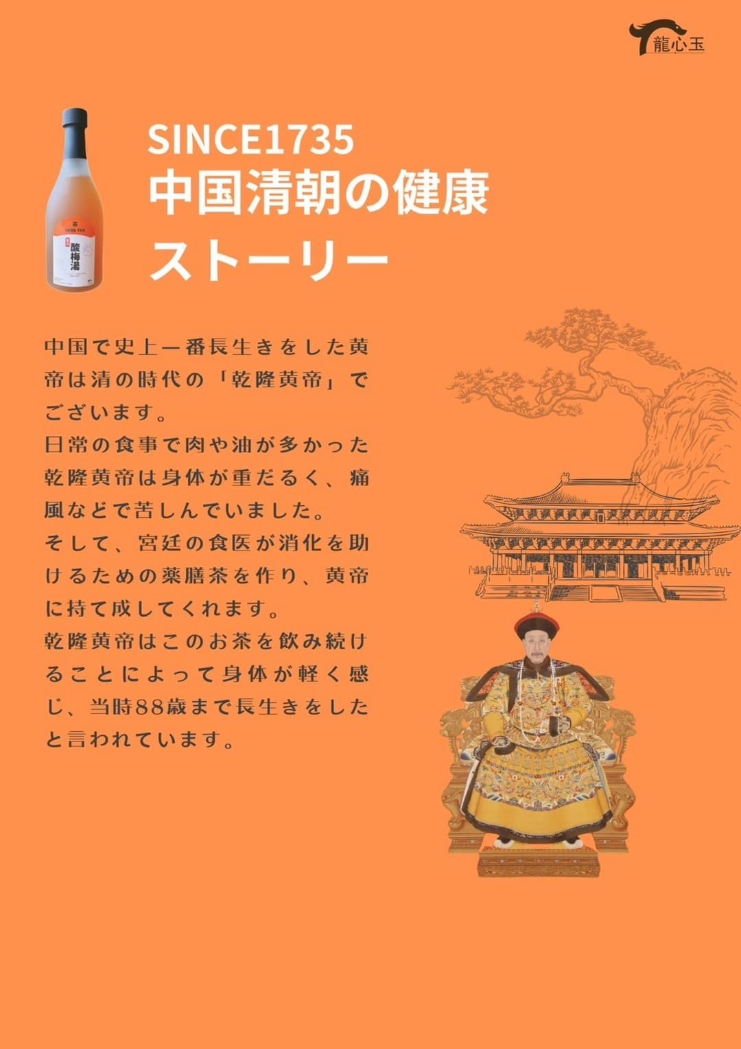 1735年頃、乾隆皇帝が中国の宮廷で愛飲していた伝統製法による酸梅湯(サンメイタン)です。