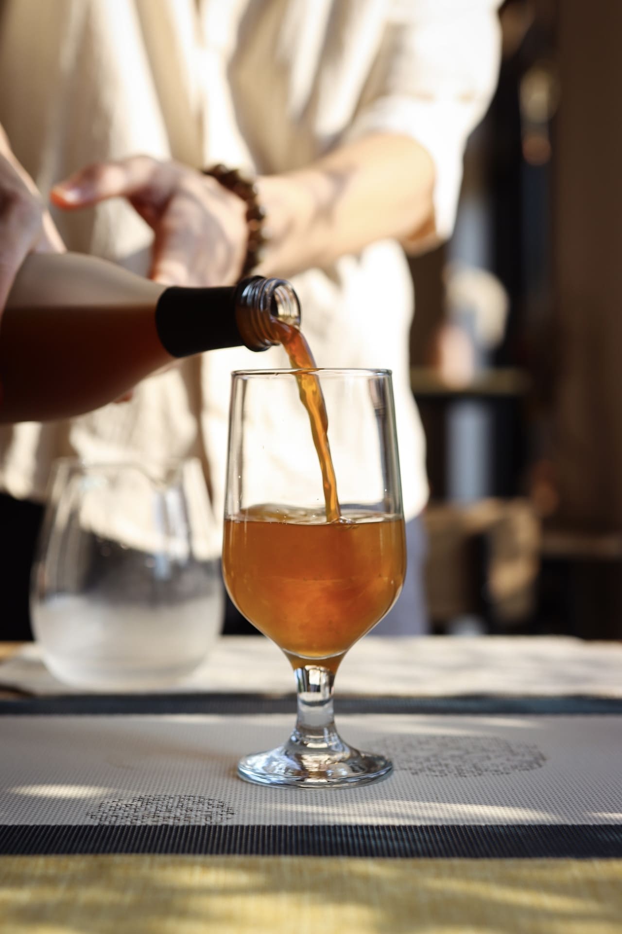 酸っぱくて爽やかな味わいが特徴の「宮廷酸梅湯」は、暑い日に冷やして飲むのはもちろん、寒い日には温かいハーブティーとしても。お水で割って爽やかに、お湯で割って温かく、他にもお好みのお酒を割ったり、氷を入れたグラスに注いでロックで、お好きな飲み方でお楽しみいただけます。