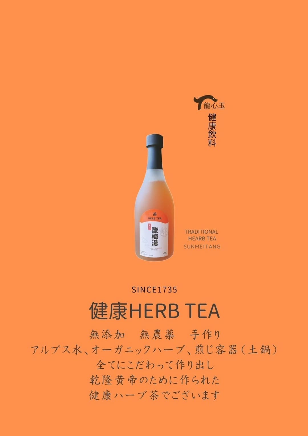 「宮廷酸梅湯(グンティンサンメイタン)」は、白砂糖不使用で天然水を使用した、無添加の健康ハーブティー。厳選された無農薬のハーブを使用しており、特に消化を助け、胃腸の健康をサポートする梅と山楂子(サンザシ)が含まれています。